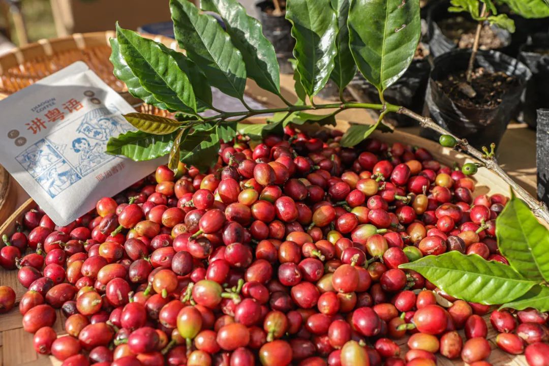 ▲ 咖啡豆、肉桂咖啡、香云纱产品。陈彦成 赖家乐 邹华彬 摄