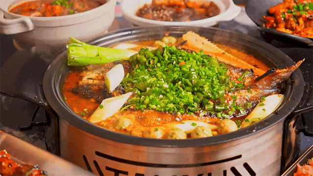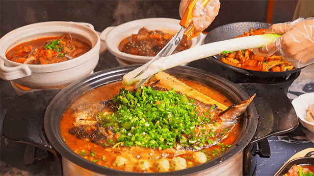 鱼皮烤得酥脆,鱼肉依然嫩得入口即化,青椒和葱段的清香彻底渗进汤汁里,越煮越香!搭配上一碗米饭,汤汁一浇,瞬间光盘警告!