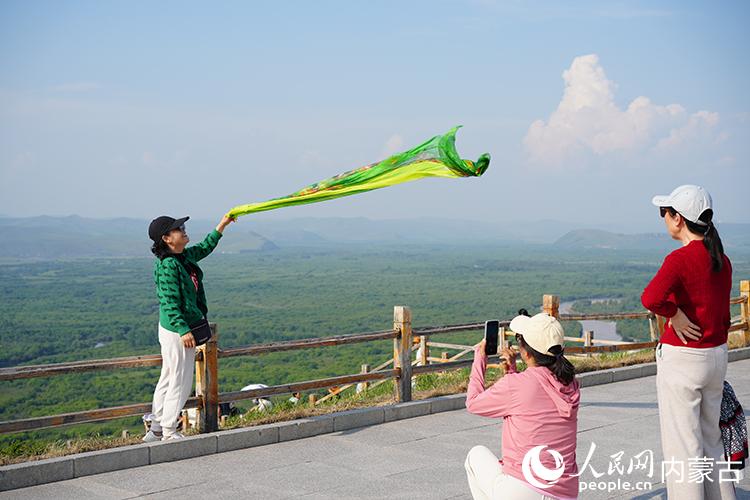 游客打卡“亚洲第一湿地”。人民网记者 李睿摄